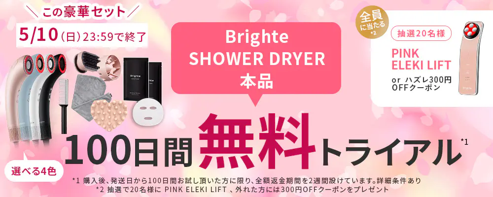 *お試しいただいた方限りお試し期間終了後の2週間以内に返品手続きをしていただくことで商品代金を全額返金する制度です。本品(化粧箱等を含む)が揃った状態でご返送いただく必要があります(送料お客様負担)商品発送後100日間は返金申請を受け付けることができません。詳細条件はキャンセルポリシー(https://brighte.jp/shop/pages/cancelpolicy)をご確認ください。