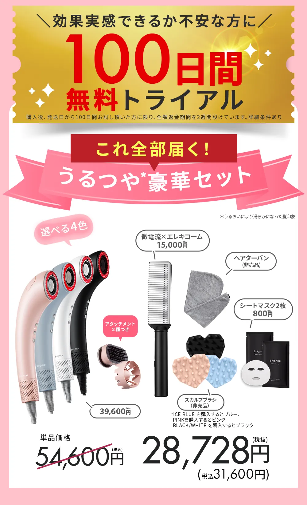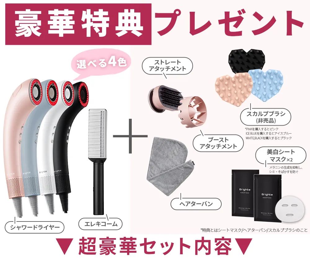 *セット品のご購入によって。特典とはエレキローション/ヘアターバン/シートマスクのこと